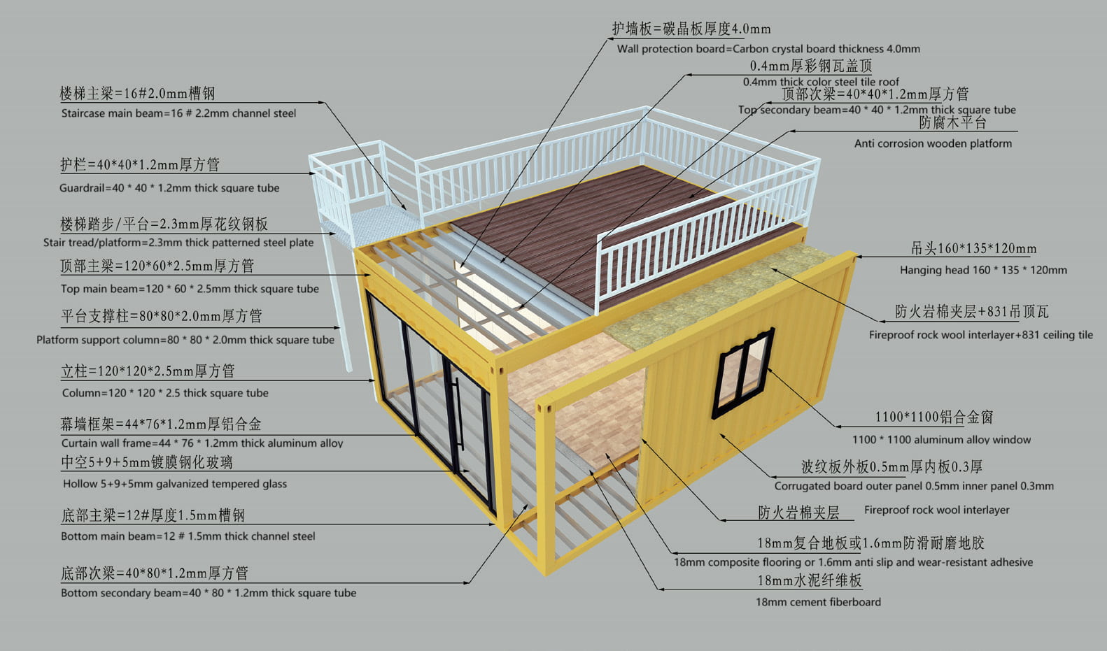 A tabela abaixo descreve as principais especificações dos nossos dois modelos de casas container mais populares, projetados para atender aos códigos de construção globais (por exemplo, ICC dos EUA, CE da UE e AS/NZS da Austrália).